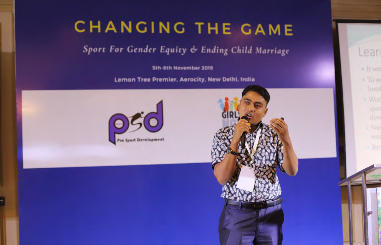 On November 5th – 6th 2019, Pro Sport Development and Girls Not Brides held a national consultation to understand how sport can be used as a medium to combat gender-based discrimination. The consultation, held in New Delhi, India saw a total of 68 representatives from a variety of civil society and non-governmental organisations from 16 states in India, along with representatives from Nepal and Bangladesh, gather to share experiences of using sport as an approach to support gender equity.