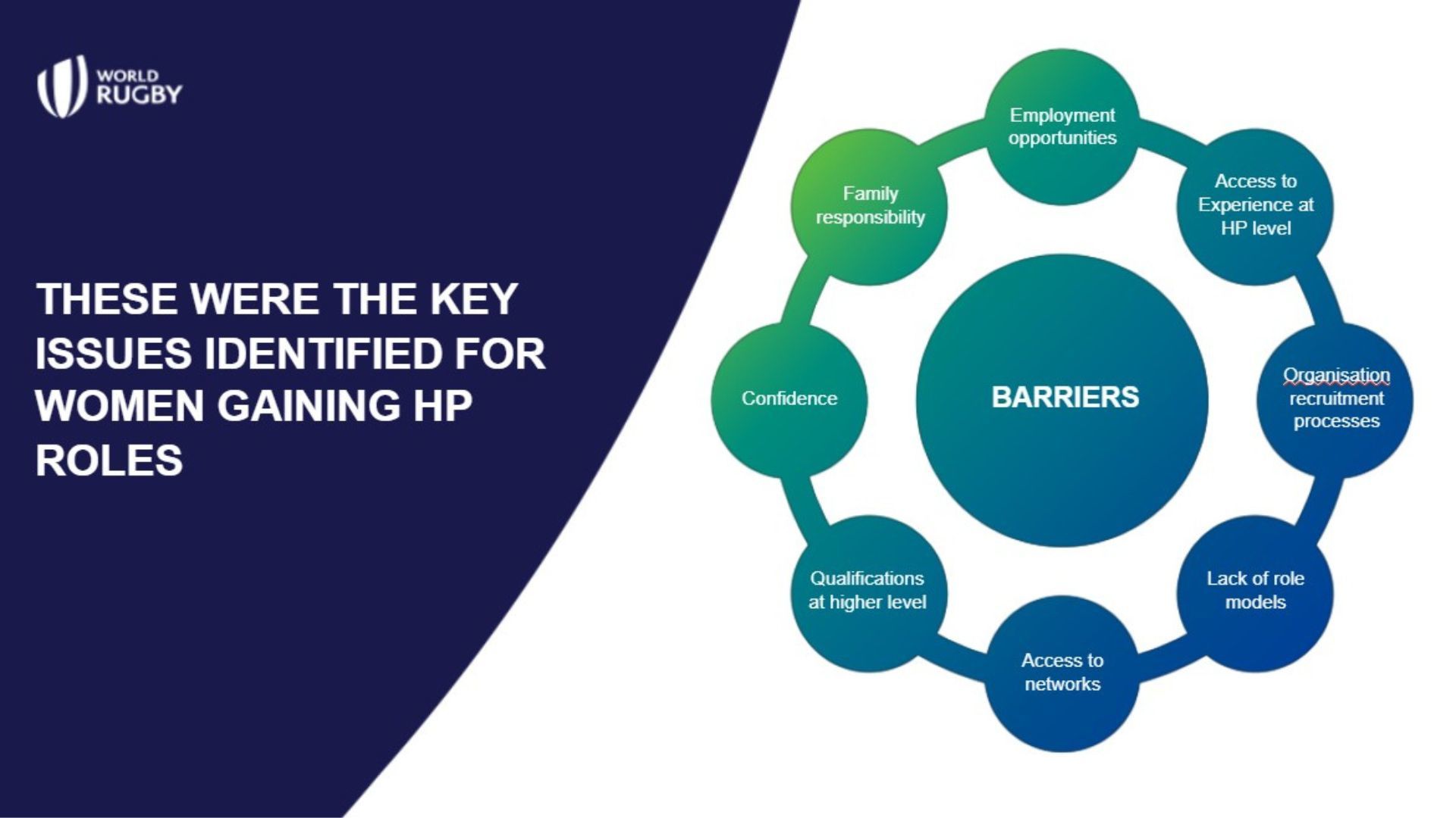 A number of barriers (see next slide) were identified and a range of interventions were put in place to try to address these issues. A key issue has been the inability for female coaches to gain the crucial experience at a high performance level to be appointed to elite coaching roles.